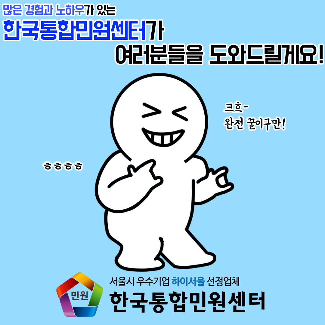 |  개인정보관리책임자 : 김영석  |  Fax : 02-6000-9378  |  카카오톡 : 한국통합민원센터, 배달의 민원 배달의 민원 플러스친구로 상담받기